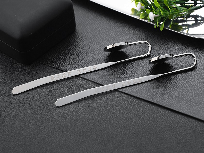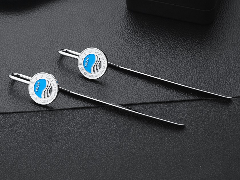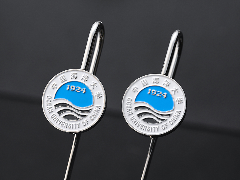 【制作工艺】:冲压 【上色工艺】:烤漆/激光雕刻 【电镀颜色】:银色 【背面工艺】:砂底 【产品配件】:如意书签杆