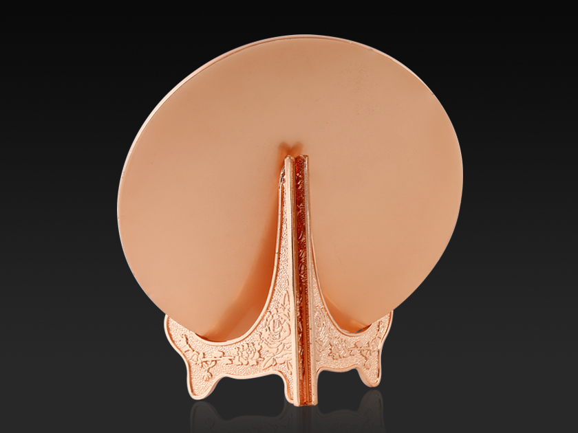 【制作工艺】:压铸 【上色工艺】:金属本色 【电镀颜色】:双色(金色+玫瑰金) 【背面工艺】:亮面 【产品配件】:金属支架